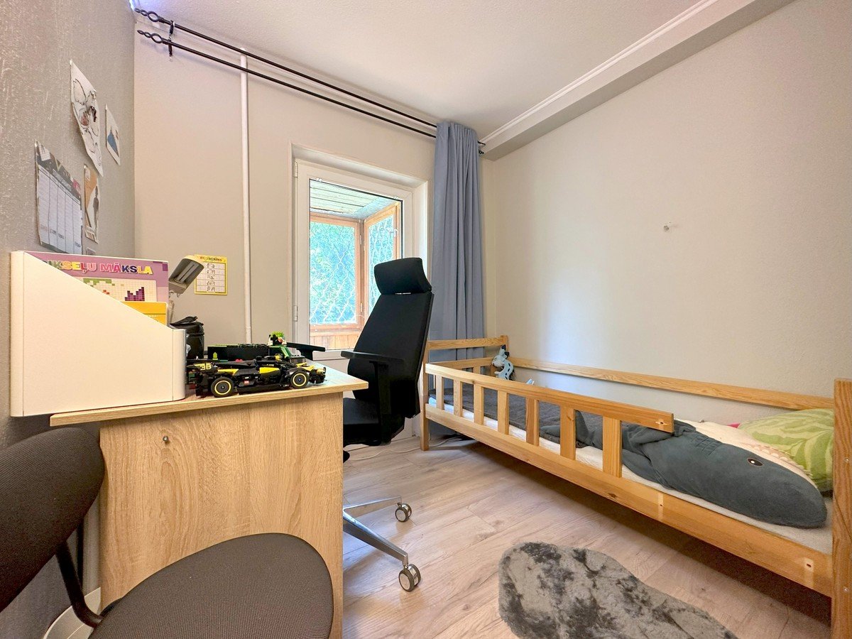 Dzīvoklim ir labs plānojums: 3 (trīs) izolētas istabas, dzīvojamā istaba, kas apvienota ar virtuvi, gaitenis, apvienota vannasistaba, garderobe un lodžija.