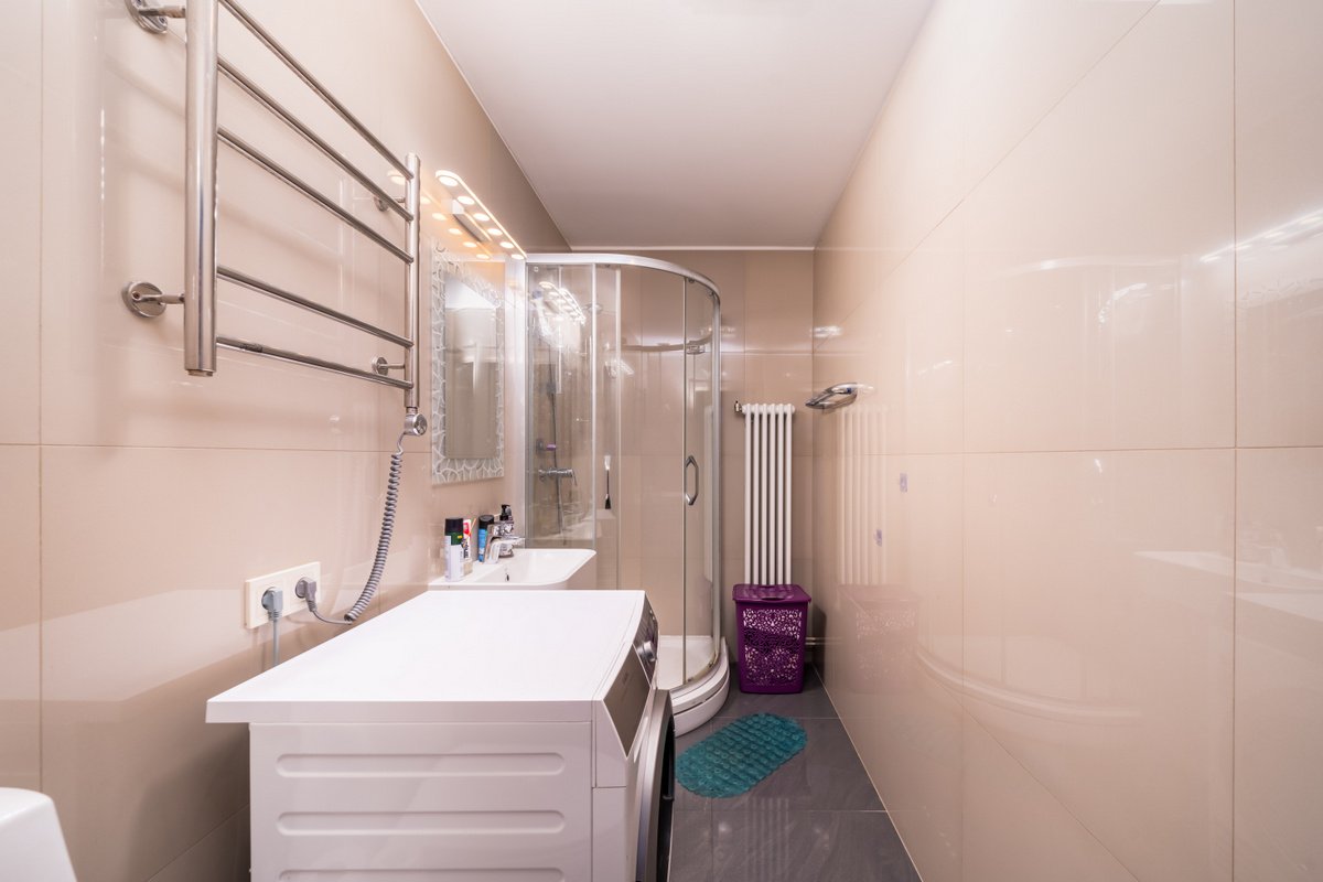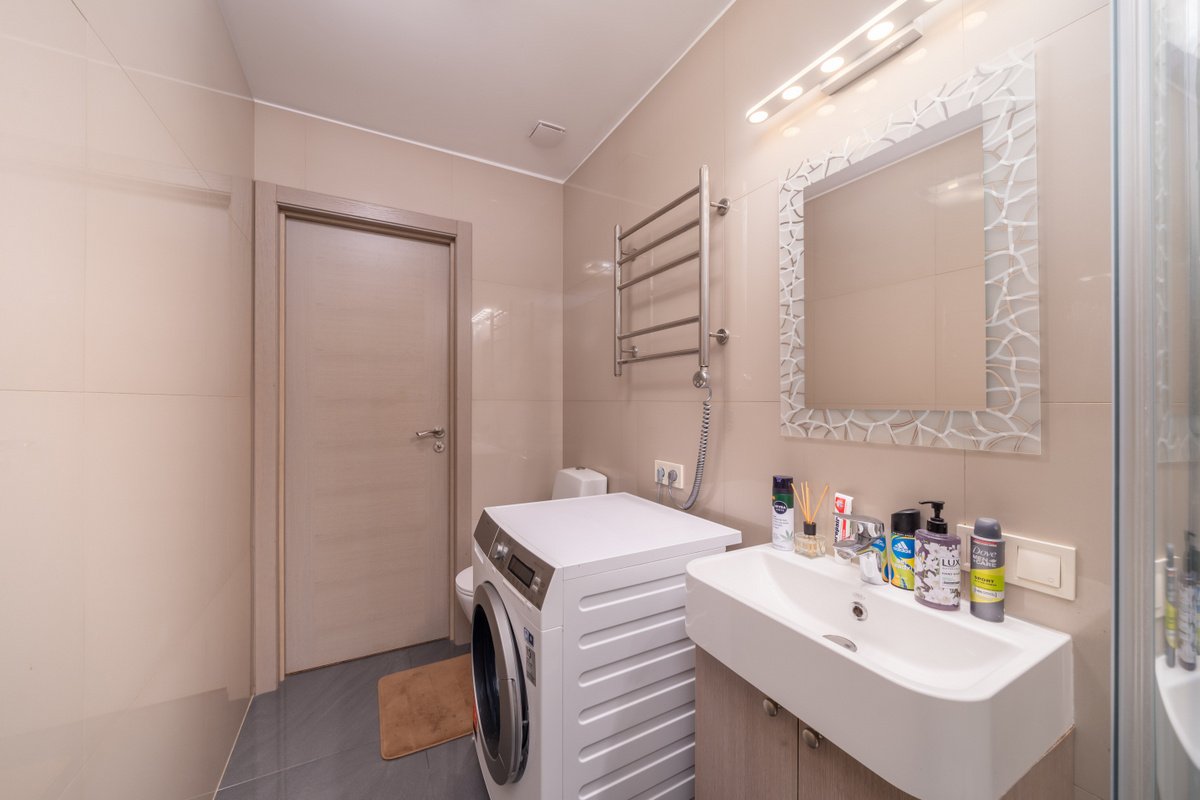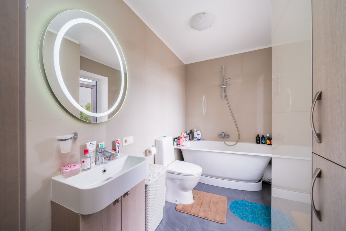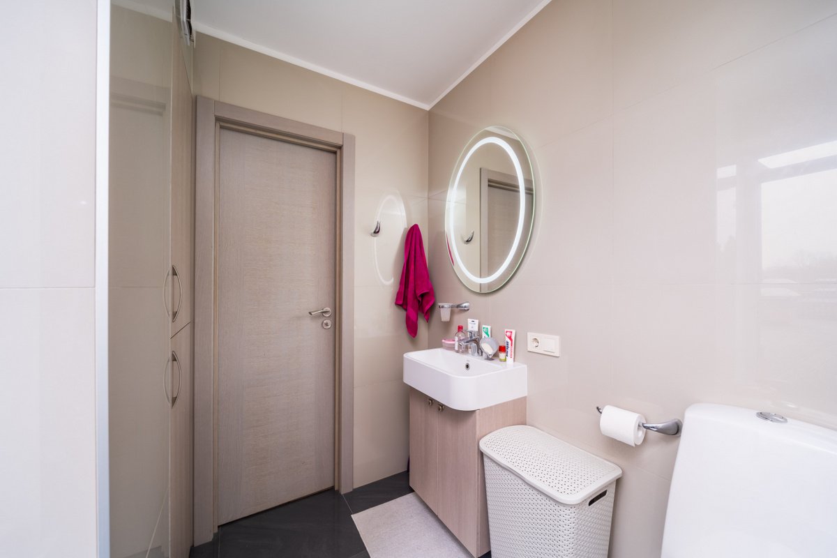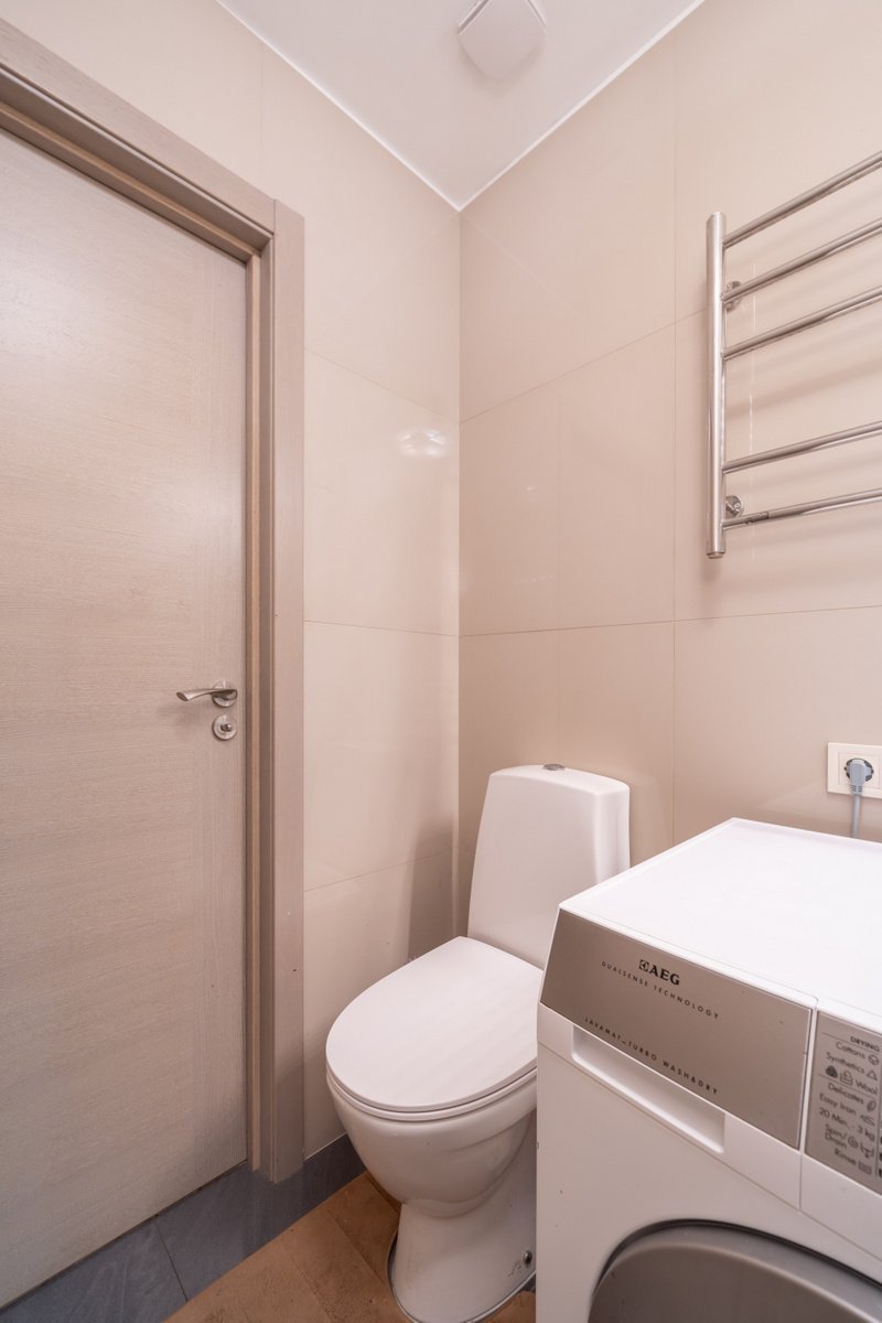 + Apdarē izmantoti īpaši atlasīti augstas kvalitātes materiāli – izturīgs un kvalitatīvs grīdas segums, kā arī uzticama santehnika (HANSGROHE un PAA).