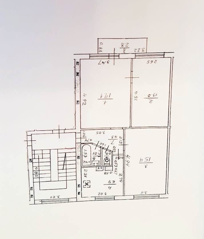 Dzīvoklis sastāv no: trim izolētam istabām, koridora, virtuves, tualetes, vannas istabas un balkona